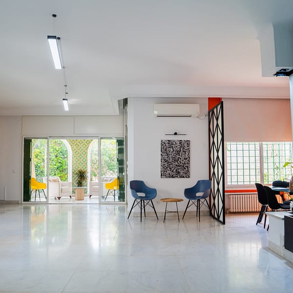 Un espace polyvalent, modulable et inspirant, idéal pour tous vos événements professionnels, formations ou ateliers à Tunis. Parfait pour les coaches, équipes et créateurs qui cherchent un lieu flexible et équipé.